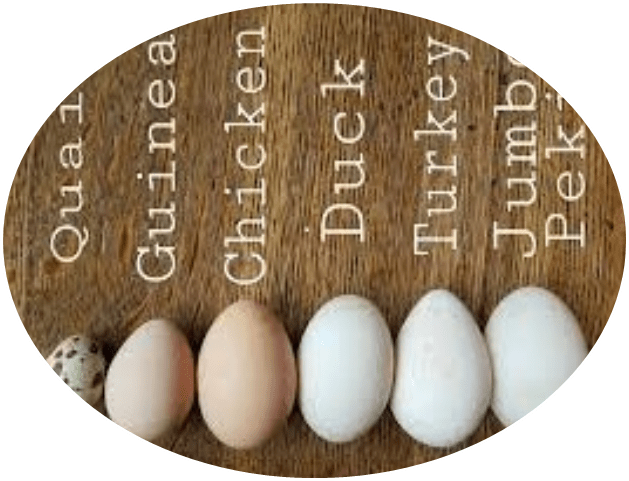 Eggs for quails, duck, chicken, guinea fawl, turkey, and goose